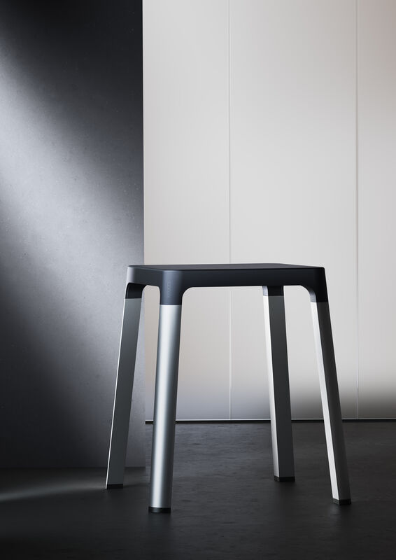 Besonderes Highlight der Serie ist der Stützklappgriff: hochgeklappt steht er einzigartig flach und unauffällig an der Wand. Beim Hochklappen schieben sich die Profile des Stützklappgriffs auseinander. So ergibt sich an der Wand die einzigartig flache, elegante und nahezu skulptural anmutende Optik.